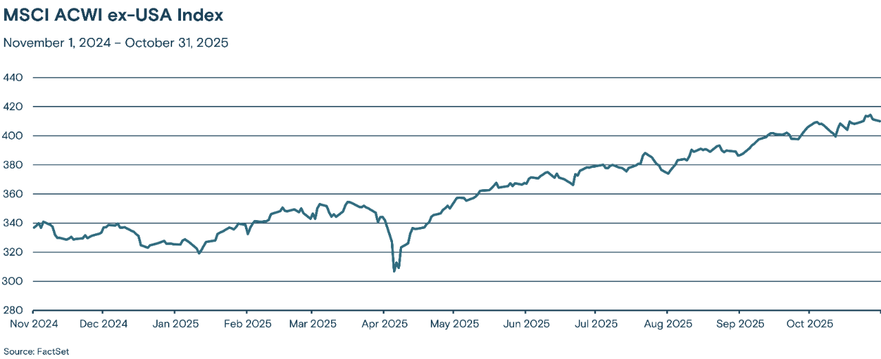 The MSCI ACWI ex-USA Index is an unmanaged index considered representative of large- and mid-cap stocks across developed and emerging markets, excluding the U.S.